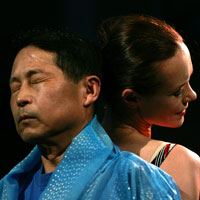 Stranges Stories (Meta-Theater, München) mit dem Nô-Tänzer Akira MATSUI, den japanischen Nô-Musikern Jinya IMAI und Marumi TAKIZAWA und der Ballett-Tänzerin Yelena Pankova br/> Schaubühne Lindenfels, Beginn: 19h00